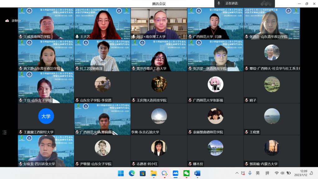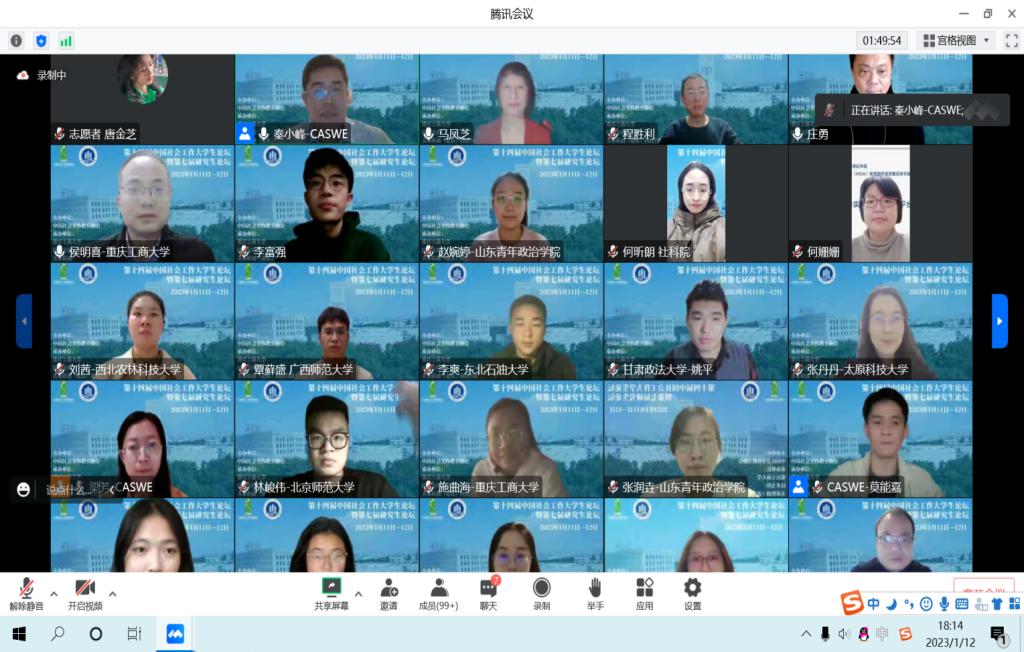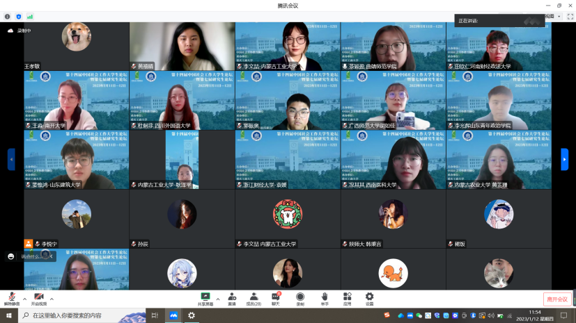 12日上午八点半至下午四点半,九个分论坛同步线上进行,284名同学围绕着第三次分配及共同富裕与社会工作、乡村振兴与社会工作实践、社会工作数字化转型、乡镇(街道)社会工作站建设与研究、新媒体与社会工作服务模式等具有时代鲜明特征的研究主题进行汇报,包括公司社会工作系多位教师在内的34名专家对同学们的汇报进行点评,各个分论坛尽然有序,同学们在论坛中收获颇丰,专家们也看到了中国社会工作的新兴力量。