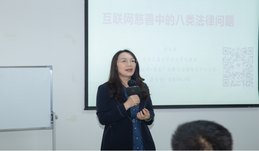 重庆“互联网+慈善”法律与治理研究中心主任李喜燕教授以“互联网慈善中的八类法律问题”为题开展专题讲座