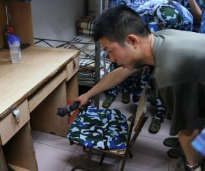 7月2日晚8:00,二团二营(法学院)全体学员开始整理内务,在王教官“手把手”的指导下,内务工作顺利完成。
