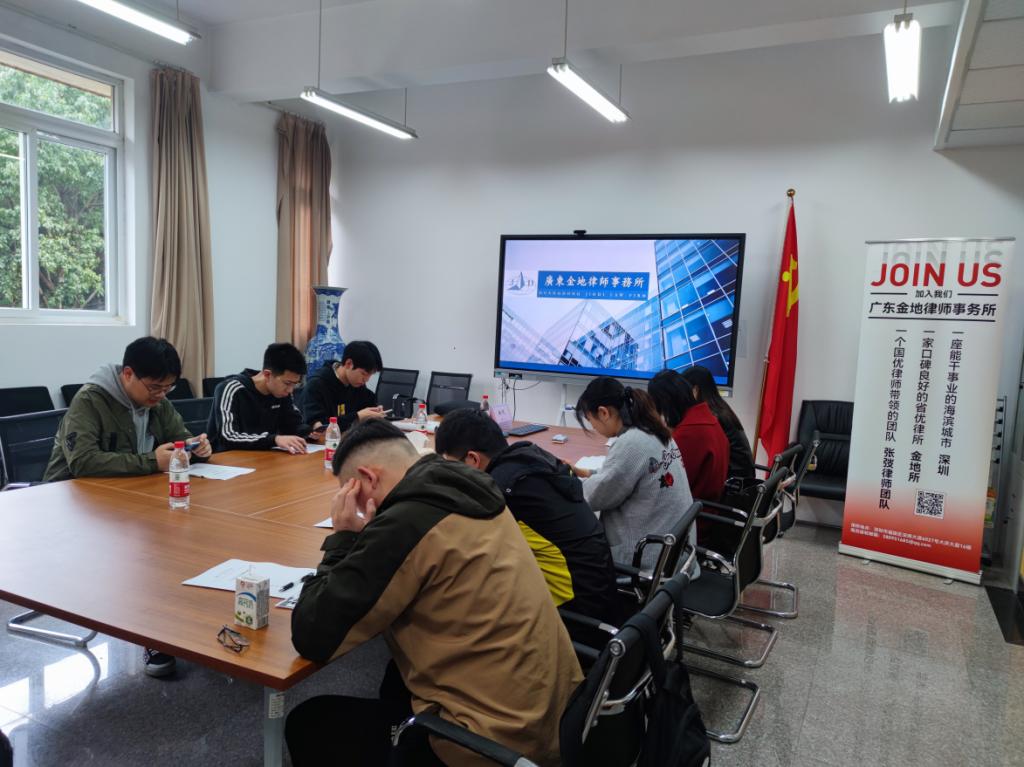 3月24日上午,学院邀请广东金地律师事务所高级合伙人张弢带队到校招聘。祝凤瑞、徐悦、李心意等律师与学院8名本硕毕业生在慧智楼407会议室开展面对面交流。