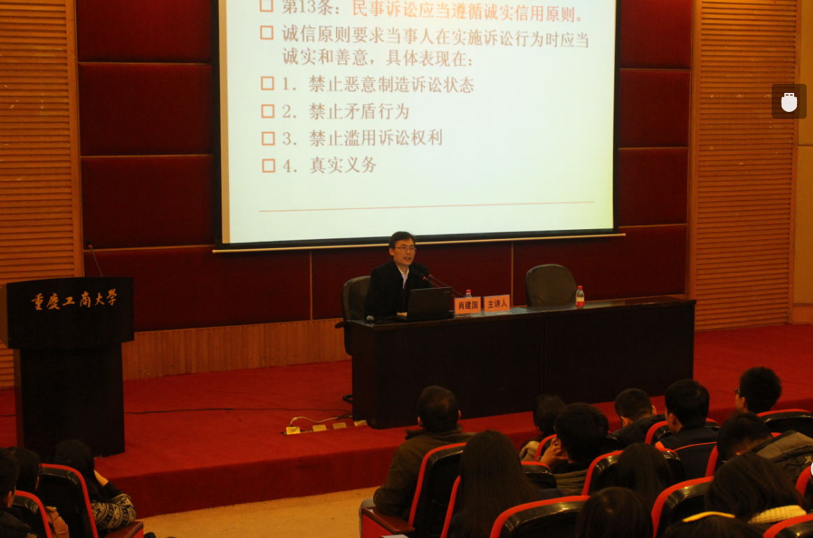 12月9日晚,中国人民大学肖建国教授应邀来公司为法学院师生作了题为“民事诉讼修改的前沿问题”的讲座,讲座在博智楼7200举行,吸引了众多学子前来聆听。此次讲座由法学院经理杨和义主持。