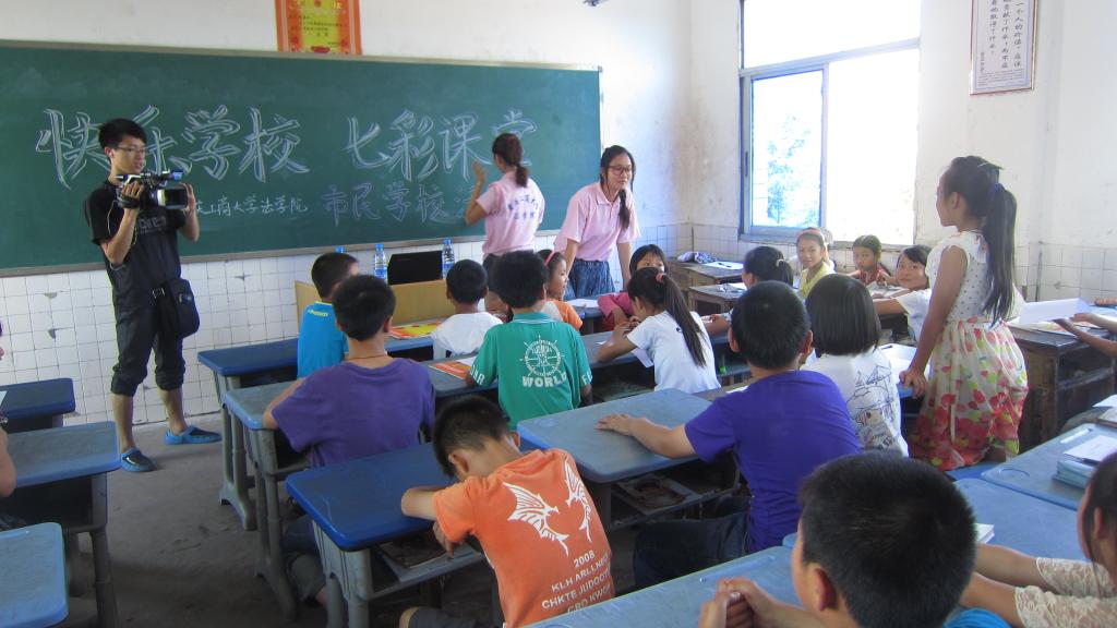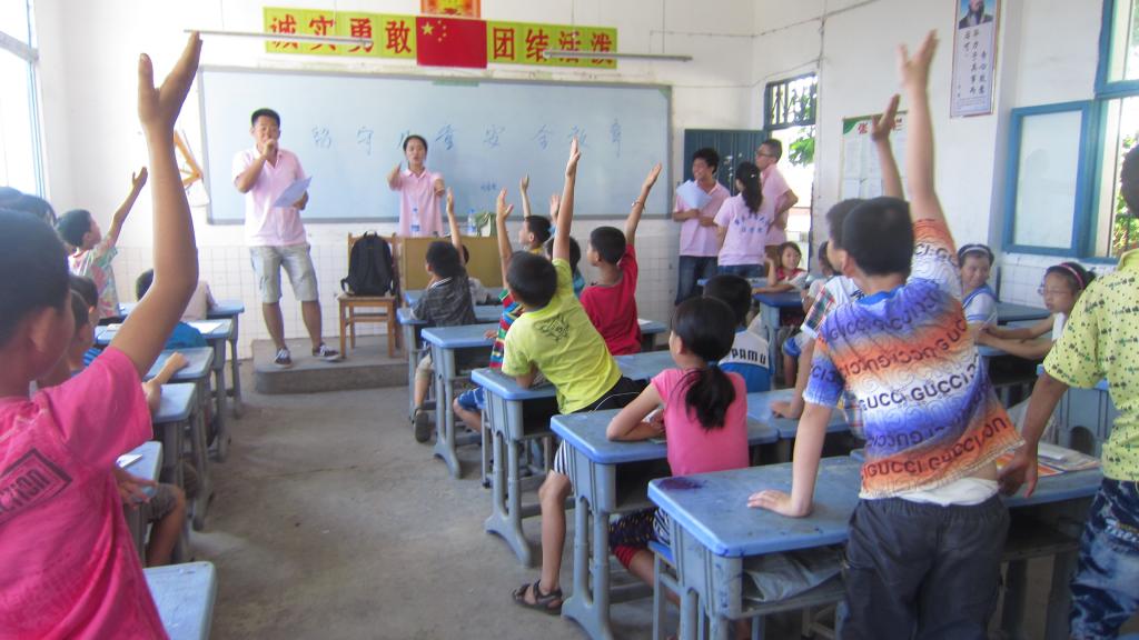 此次活动旨在通过丰富的教学内容关注留守儿童的内心成长,提高其法律意识和安全意识。活动中,社会实践团成员分为三个教学小组深入到四年级(1)班、五年级(1)班和(2)班教室开展了法律知识普及,宣讲了预防青少年犯罪以及安全教育等相关问题。通过课堂互动、聊天的方式,获知小朋友们在生活、学习中遇到的困难和担忧并给予其指导。同时,社会实践团成员以“中国梦”为契机与小朋友们一起分享了各自的梦想,并鼓励大家树立目标、勇于追求。成员们还在课堂上进行古诗接龙、知识竞答等游戏,拉进了与小朋友们的距离。教学结束后,社会实践团成员还对留守儿童做了有关教育现状的问卷调查。