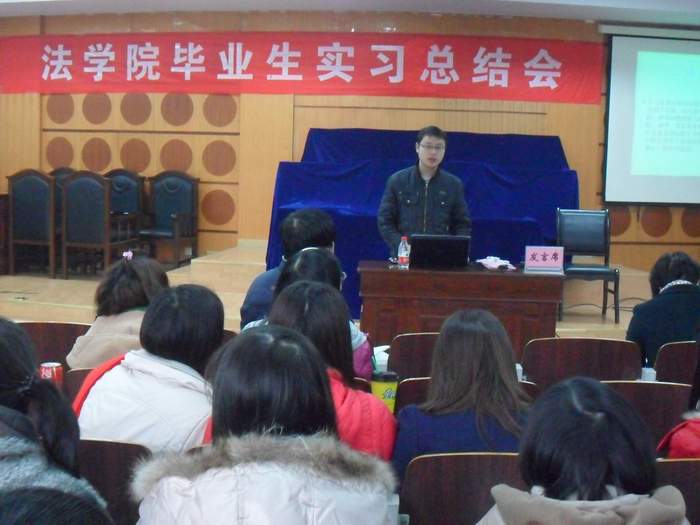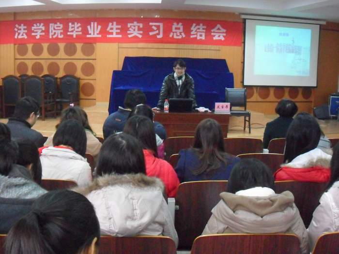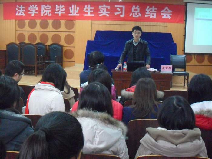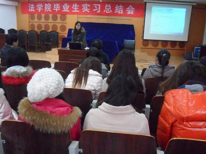 岁末年尾之际,2012届毕业生为期三个月的毕业集中实习也圆满落下帷幕,并在慧智楼模拟法庭成功召开实习总结大会。法学院经理华鹰老师和08级全体同学出席了本次会议,此次大会由08级辅导员林细妹老师主持。