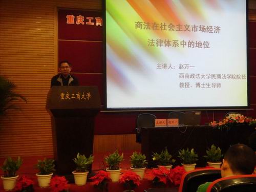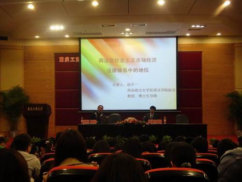 3月25日晚上,由西南政法大学民商法学院经理赵万一教授主讲的《商法在社会主义市场经济法律体系中的地位》学术讲座在博智楼7200学术报告厅举行。讲座由法学院经理华鹰主持。