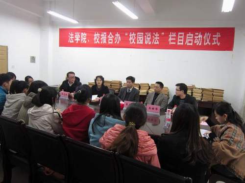 为进一步推进学校的法制宣传教育,增强全校广大师生的法律意识,11月17日下午,法学院与校报合作创设的“校园说法”栏目于法学院会议室正式启动。本次活动是继“校园说法”情景剧之后、第十届校园法律文化节的又一特色活动。