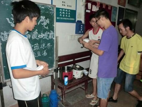 自立秋以来,在将近一个月的时间里,重庆的天气并没有丝毫的秋意,反而频频出现40摄氏度以上的高温天气。对此,学院分团委立即采取对应措施,提供了一系列防暑消热服务。法学院分团委员工干部分组行动,有的冒着炎炎烈日前往药房,为同学们购买了藿香正气液、板蓝根以及清热凉草等防暑消热药品;有的想方设法借用各种厨房用具熬制中药凉茶、绿豆汤等饮品,从食疗的角度达到清热消暑的目的;有的深入楼栋各寝室给同学们讲解防暑、消热的小窍门,多渠道、多方面来帮助同学们适应“秋老虎”。学院分团委的这一系列关怀行动,为同学们送去了炎炎夏日里最清凉的“一杯水”,赢得了同学们的一片赞扬。