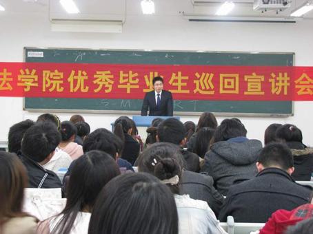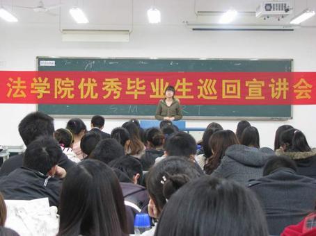 宣讲会现场,法学院2011届优秀毕业生代表多角度分析了法学本科专业学习、考研和就业三方面的核心内容以及三者之间的紧密联系,告诫同学们“球在脚下,我们不踢就永远没有进球的机会”。他们用诙谐的言语给大家带来了一堂生动的经验分享课,不仅践行了自身发愤图强的承诺,更加展现了他们身上独有的内在品质和人格魅力。在学习上,他们脚踏实地、积极进取、不耻下问,演绎出“书中自有颜如玉,书中自有黄金屋”的精彩;在工作上,他们兢兢业业、埋头苦干、求同存异,诠释了“宝剑锋从磨砺出,梅花香自苦寒来”的拼搏精神;在生活上,他们勤俭节约、乐于助人、服务社会,彰显了一名中华儿女应有的传统美德......他们用实际行动将自身的“螺丝钉”精神渗入到了学习生活的方方面面,发挥好排头兵的作用,成为大家学习的楷模。