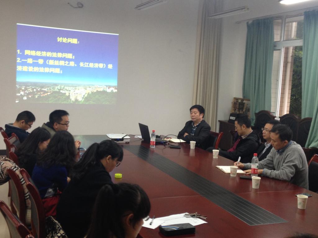 为在共建项目实施中,整合力量,形成特色,有效推进项目实施,2014年10月17日下午,法学院在慧智楼90428会议室召开财经法律双学科融合创新团队建设项目实施特色论证会。学校人事处赵驹处长、科研处曾庆均处长、研究生院余兴厚经理及法学院全体教师参加了本次会议。