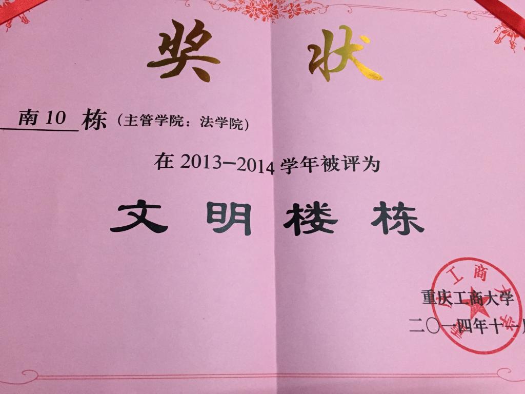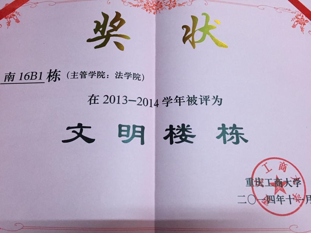 祝贺法学院南16B1楼栋荣获优秀党员服务站、文明楼栋 南10楼栋荣获文明楼栋