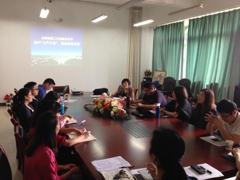 2015年6月19日下午,法学院在慧智楼90429会议室组织开展了“三严三实”专题教育党课,公司党总支书记李自维、经理杨和义、副经理刘勇及全体教师党员参加了本次党课学习。