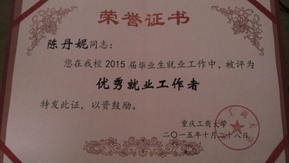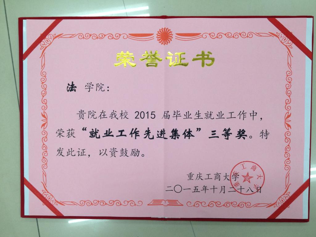 11月2日上午,在学校召开的2015年本科就业、招生工作表彰会上,法学院获得“就业工作先进集体”,同时陈丹妮老师获得“优秀就业工作者”奖。