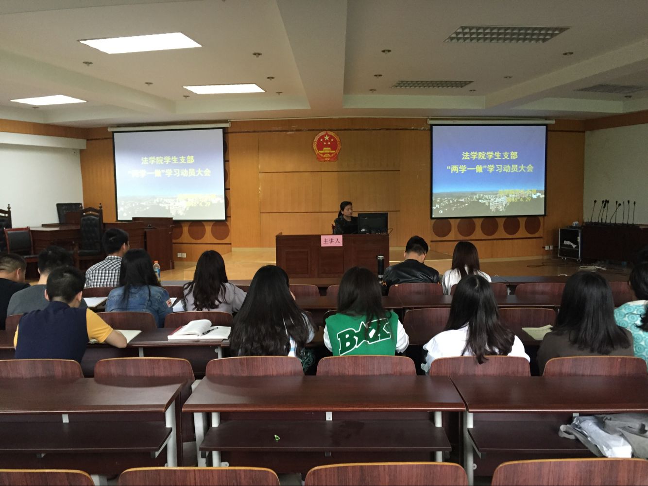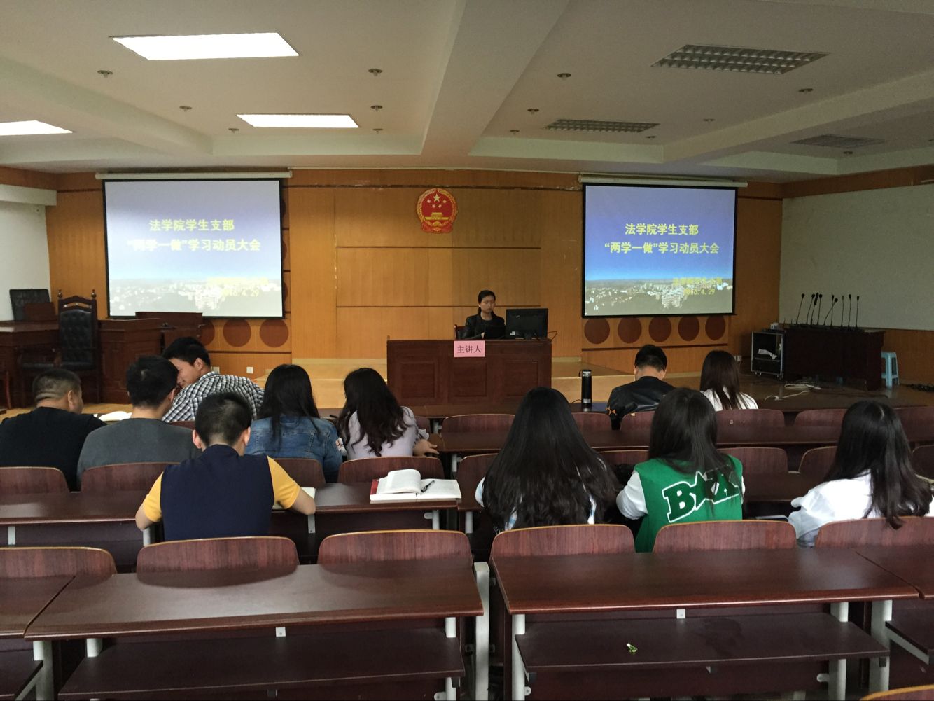 为践行中共中央《关于在全体党员中开展“学党章党规、学系列讲话,做合格党员”学习教育方案》精神,4月27日,法学院员工支部在模拟法庭召开了全体党员 “两学一做”学习动员大会。
