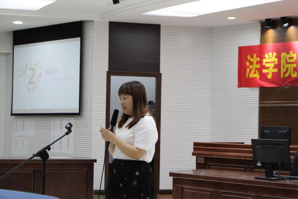 出席此次大会的人员有法学院分团委副书记成涛、法学院分团委员工会主席黎娜、法学院分团委员工会副主席邓馨纯、胡瑞和熊航。首先,组织部、宣传部、新媒体部、学科部、素括部、体艺部、权益部、社会实践部各部的代表对本学年的工作成果以PPT和演讲的形式进行了展示,并做了工作总结,总结了各部门的不足与收获。接下来,主席团为部长们颁发了聘书,并给运动会中的先进工作者颁发了奖状。大会第三项内容是部长代表团发言和干事代表团发言,部长和干事们都表达了自己对员工会的深切感情和自己在工作中的心得体会,员工会是一个大家庭,需要每个人共同努力把它建设得更好,员工会充满着每个人的记忆,每个成员在里面都有苦涩或美好的回忆,对彼此更有最真切的感情。大会最后,法学院分团委员工会主席黎娜发言,对自己的三年员工会生活做出了回顾,讲述了自己的任职生涯中的故事,说出了自己的收获与经历,并对员工会的未来表达了自己衷心的期待与祝福。
