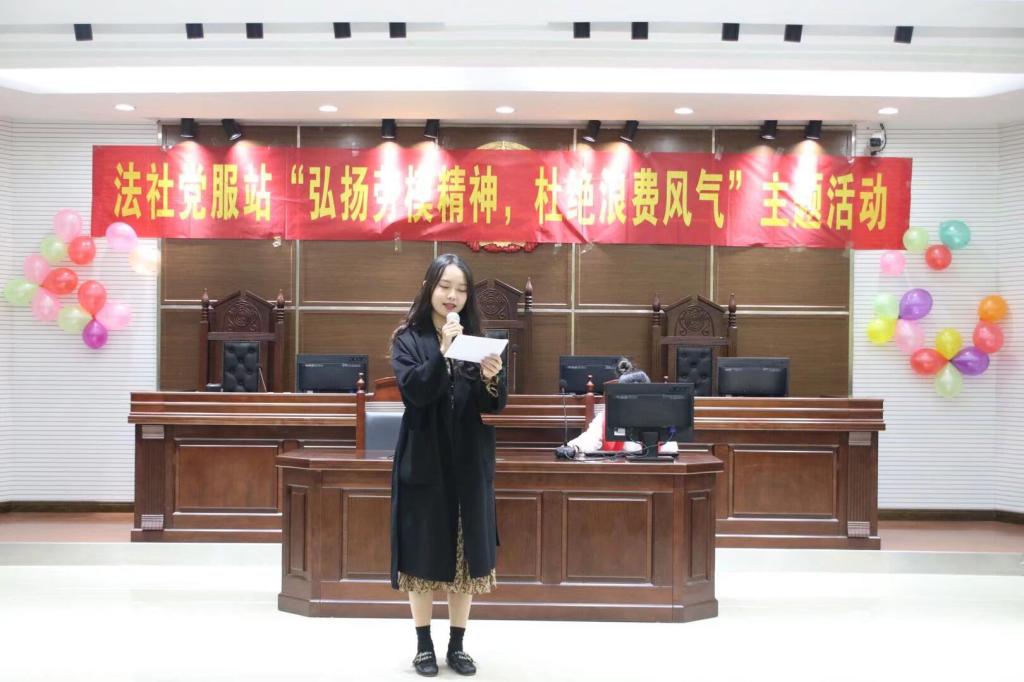 本次活动是在习近平总书记对制止餐饮浪费行为作出重要指示下,为了响应党的号召而举办的以“弘扬劳模精神,杜绝浪费风气”为主题的特色活动。为了鼓励同学们将节约粮食的风尚牢记在心,将勤俭节约热爱劳动的美德落实在实际行动中,法社公司党员服务站的部长、干事以及各班入党积极分子积极地参加了本次活动。
