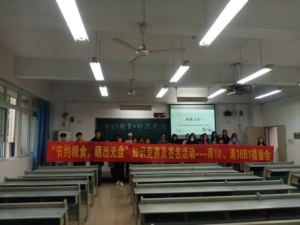为了贯彻习总书记在党的十八大和全国教育大会上提出的“厉行节约、反对浪费”和培养德智体美劳全面发展的社会主义建设者和接班人的重要指示精神,法学与社会学院于2020年11月20日在本校慧智楼面向南10与南16B1全体同学举行了“节约粮食,晒出光盘”知识竞赛及签名活动。