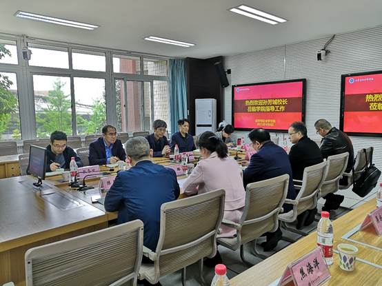 黄文围绕学科与专业建设、科学研究、人才招聘、团队队伍等方面汇报了学院主要工作,并提出了学院发展面临的困难以及未来发展的规划和思路。孙芳城从学院定位、学科发展等方面与参会人员进行了充分交流,相关职能部门负责人就学院相关问题进行了回应。