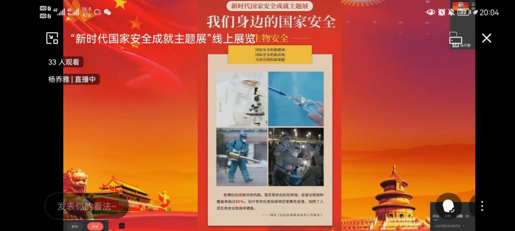 同时,律动青年法学社企业微信开展了新时代国家安全成就主题展线上展览。活动从20:00正式开始,律动青年法学社成员从政治安全、经济安全、文化安全、社会安全、生态安全等19个方面一一介绍,引导同学以习近平新时代中国特色社会主义思想为指导,全面践行总体国家观,坚持党对国家安全工作的绝对领导,汇聚起维护国家安全的强大合力。