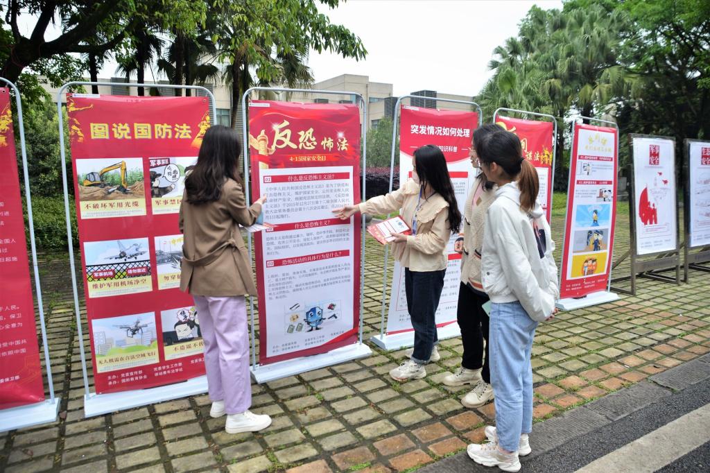 415日,“国家安全教育日”系列展板在南岸校区博智楼前摆放展出律动青年法学社的成员在展区为校内师生讲解国家安全教育相关知识,并分发知识宣讲手册与宣传单,校内师生能更好的理解接受国家安全教育相关知识面对宣讲人员的细心讲解,在校师生也热情回应,对宣人员讲解的相关专业知识提出自己的疑问,宣人员也在现场进行耐心解答。