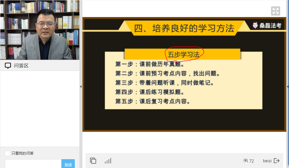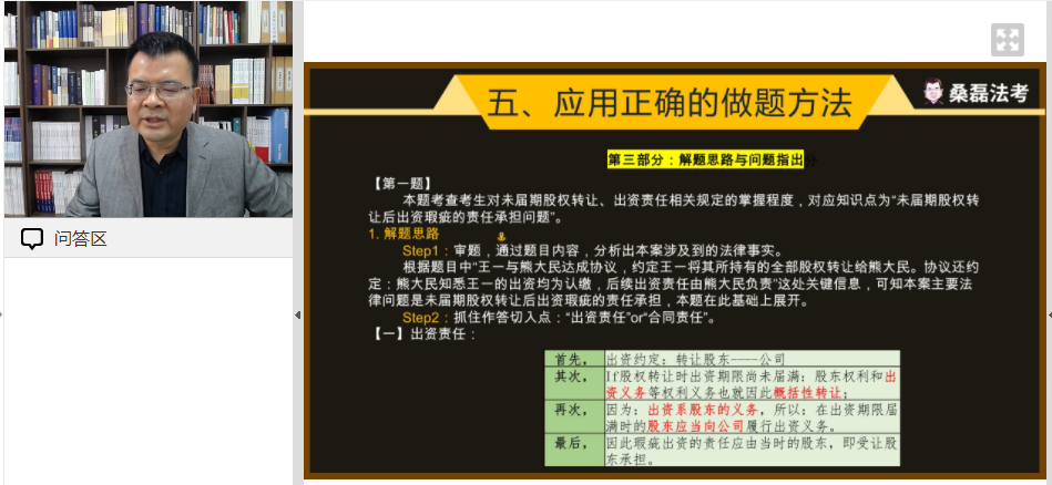 桑磊指出法考成功的秘诀是苦学+巧学+坚持,本次指导会以巧学为重点展开。他分别就法考主观题涉及的民法、商法、刑法等方面的命题形式和考试重点进行了详细讲解,根据今年的主观题命题形势进行了分析和考前预测,并针对明年的考试走向和趋势为员工提供了各类备考方法和技巧建议。桑磊总结的五步学习法和正确的主观题答题方法让同学们受益匪浅。