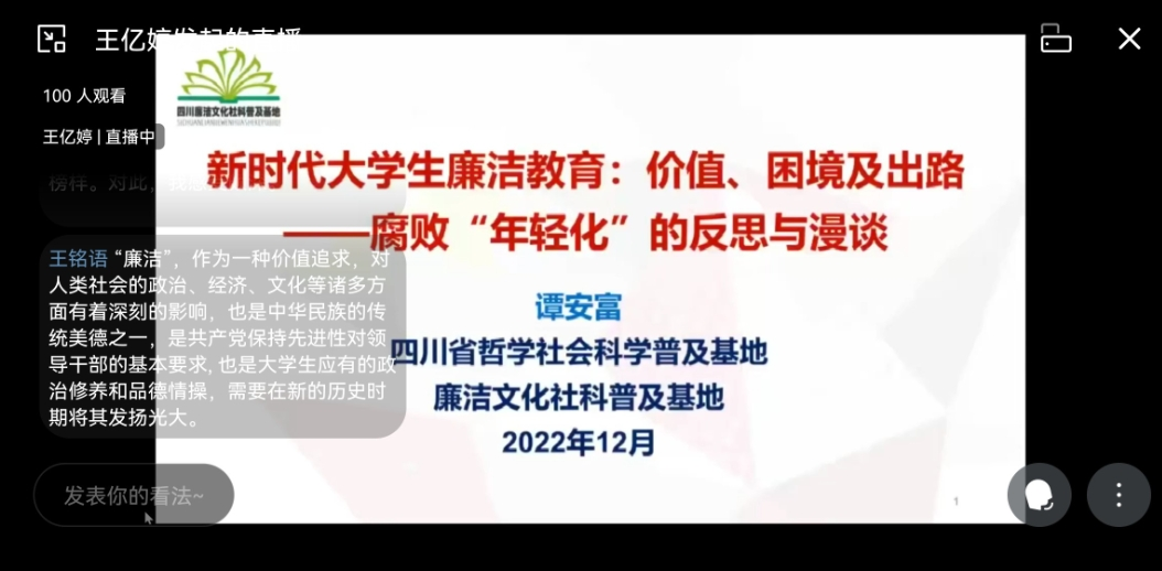2022129日是联合国设立的第19国际反腐败日j9九游会老员工廉洁文化研究会开设由中国管理现代化研究会廉政建设与治理研究专业委员会、全国老员工社团联合举办全国老员工廉洁教育月系列讲座ag九游会分场。本次系列专题讲座面向学校全体同学开放,来自各个公司500名同学参与其中。
