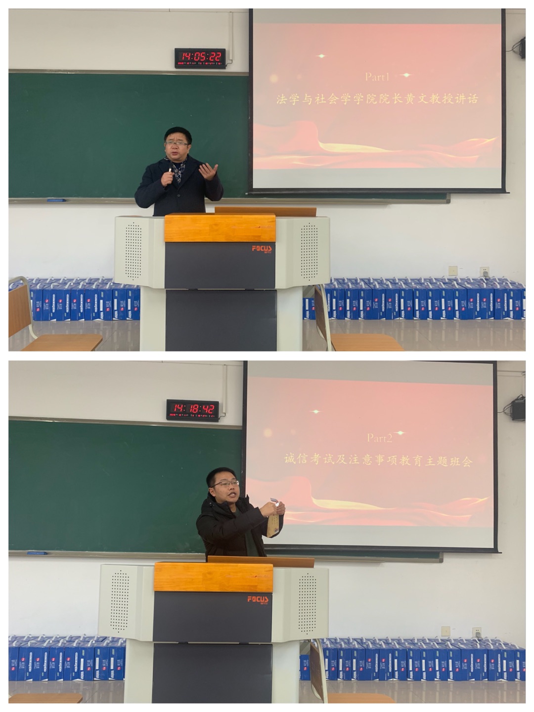 首先,经理黄文教授为参加研究生考试的同学们加油鼓劲,在备考的最后冲刺阶段,肯定和赞扬了2017级员工在国家统一法律职业资格考试中创下学院通过率新高的优异表现,以自身的考研经历、上海政法学院刑事司法学院经理姚建龙教授等杰出员工的求学经历等事例引入,鼓励同学们在考研的路上坚持到底,不做逃兵,通过攻读研究生提升自己的学术水平,扩展自己的眼界和见识。随后,2017级辅导员罗观老师为到场的各位同学召开了研究生考试注意事项和诚信教育主题班会,从研究生考试的纪律规定、答题规范、交卷注意事项等方面为同学们详细讲解了参加研究生考试需要注意的各种问题,也再一次为大家敲响了诚信考试的警钟。