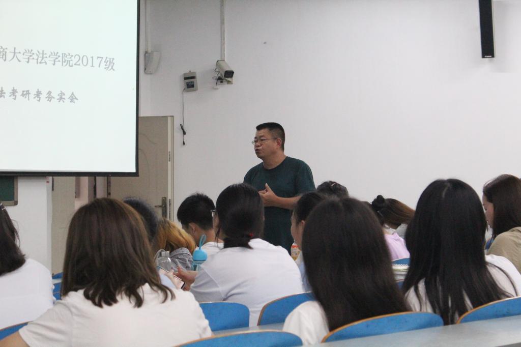 为提升公司学子对考研、法考的认识,提前做好学业规划,挖掘自身潜能。6月14日下午2点,刘波老师在慧智楼90326组织开展了法学院2017级法考研考指导大会,2017级全体同学参加了本次会议。