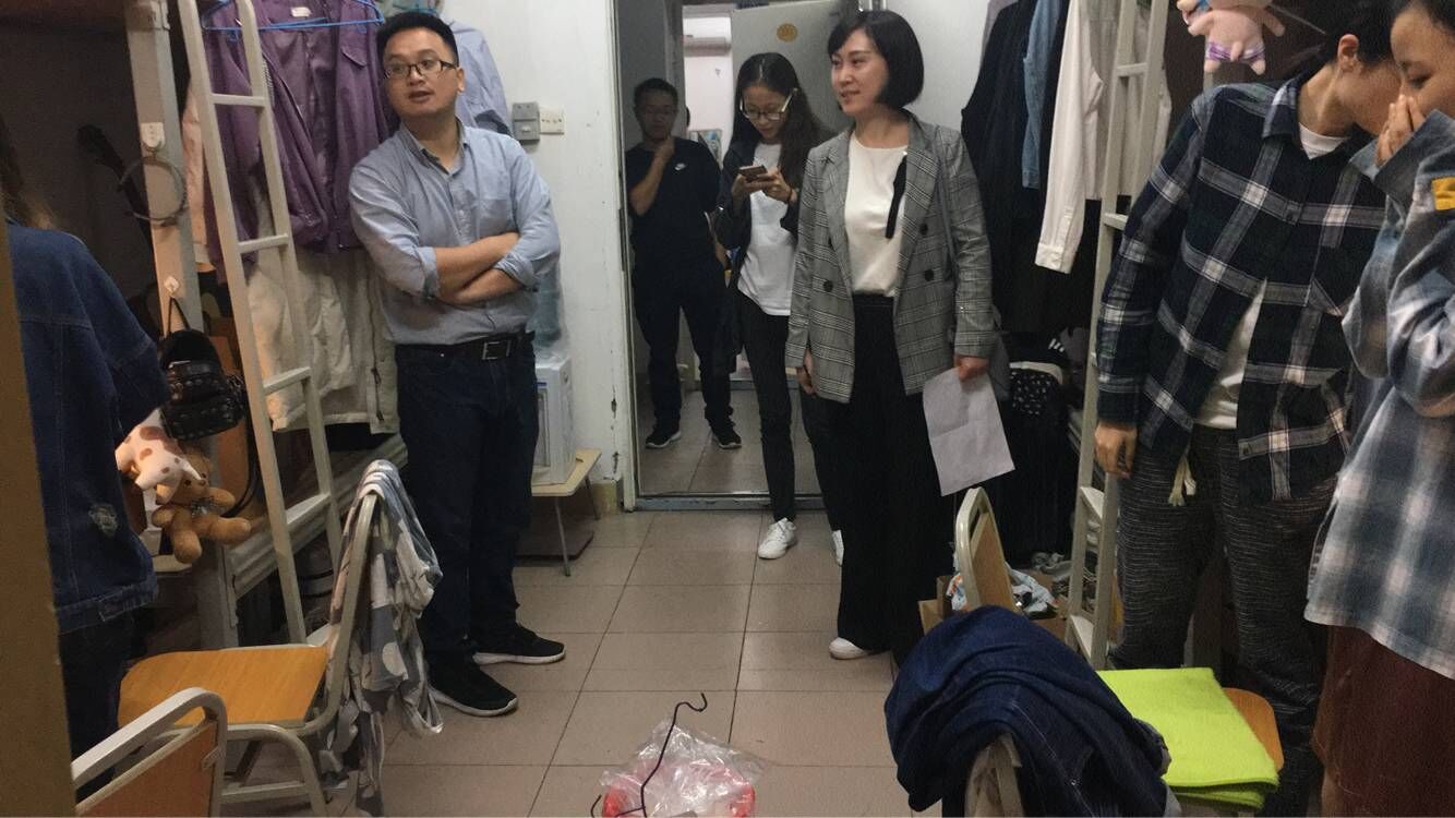 为做好员工宿舍的安全卫生工作,消除安全隐患,创建良好的学习生活环境,2018年9月27日晚,法学院经理杨和义、副经理刘勇、党总支副书记林璐带领全体辅导员及公寓员工干部对员工寝室进行了国庆节前安全卫生大检查。