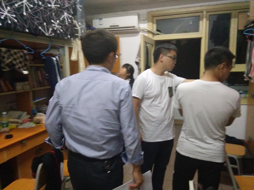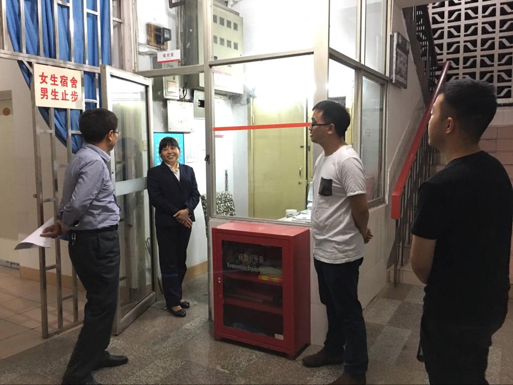 为进一步加强员工宿舍安全管理工作,督促员工养成良好的寝室卫生习惯并合理安排寝室活动,201794日晚,公司分管安全工作的刘勇副经理和分管员工工作的简福平副书记带领辅导员刘鑫、罗观两位老师深入南十栋员工公寓,对员工宿舍的安全、卫生以及员工寝室活动等情况进行了检查。