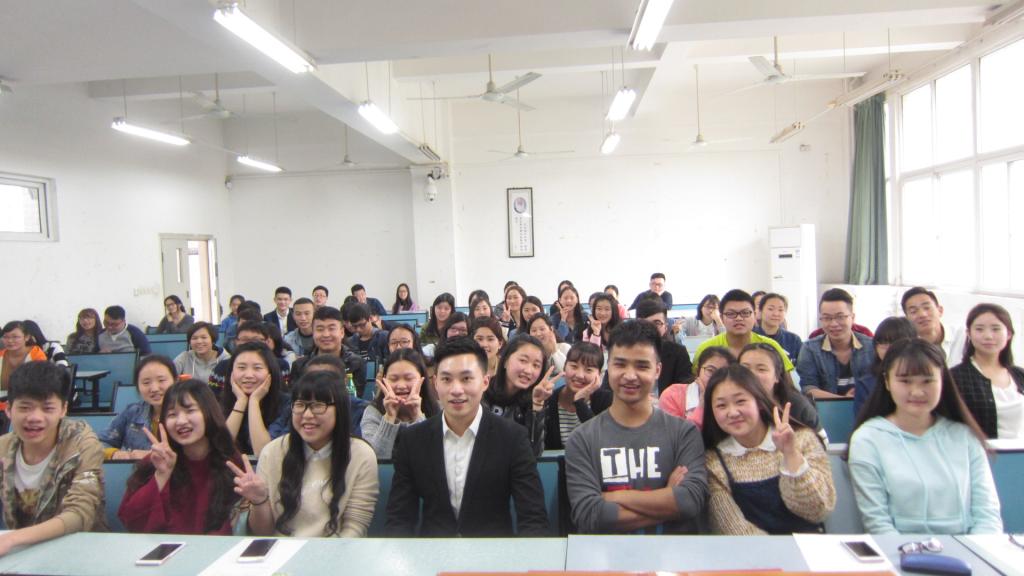 在同学们热烈的掌声中,朱耀廷开始和同学们分享自己关于演讲和口才方面的宝贵经验。怎样拥有好口才,提高自己的演讲与说话能力?这是很多同学们心中的疑问。朱老师指出,语言是一个人思想的载体,说好普通话,是提高一个人口才的最基本要求,其次,要敢讲,会讲,会倾听。本次讲座的互动环节中,同学们都跃跃欲试,积极参与到了此次互动环节中来,并向朱老师主动提出自己的疑问。接着,朱耀廷老师向我们介绍了多种提高说话与演讲能力的具体方法,在场的同学都受益匪浅。讲座的最后,同学们和朱耀廷老师合影留念,记录下了这个珍贵而有意义的时刻。