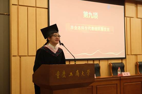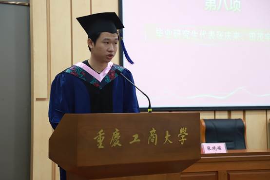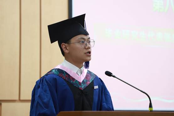 毕业研究生代表张庆来、田茂宇,毕业本科生代表杨岚馨进行了发言,他们对母校的栽培和老师们的辛勤付出表示感谢,对即将逝去的大学时光表示珍惜和怀念,对人生新征程表示憧憬和期盼。